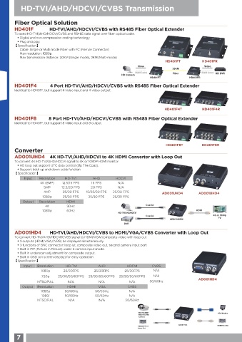 HD401F HD-TVI/AHD/HDCVI/CVBS with RS485 Fiber Optical Extender