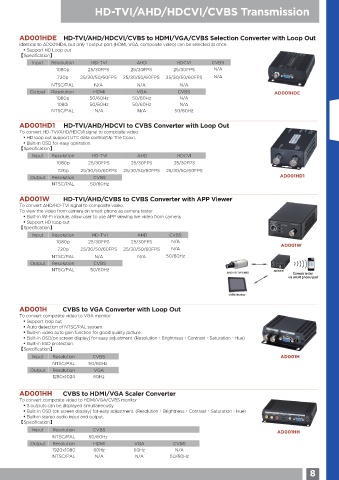 AD001HDE HD-TVI/AHD/HDCVI/CVBS to HDMI/VGA/CVBS Selection Converter with Loop Out