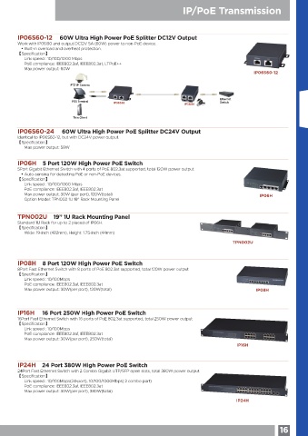Work with IP06I90 and output DC12V 5A (60W) power to non-PoE device.