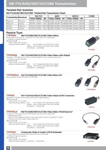 TTP111HD HD-TVI/AHD/HDCVI/CVBS Video Balun