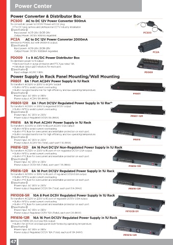 Power output: Regulated DC12V 8A (Total), each port 1.1A (MAX) PR816-12R