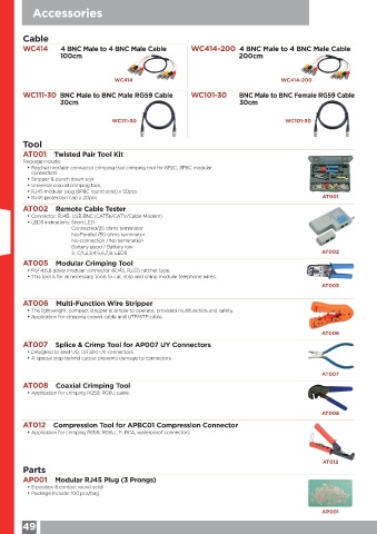 • Application for crimping RG59, RG6U , F, RCA, waterproof connectors