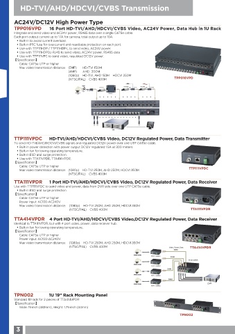 TPP016VPD 16 Port HD-TVI/AHD/HDCVI/CVBS Video, AC24V Power, Data Hub in 1U Rack